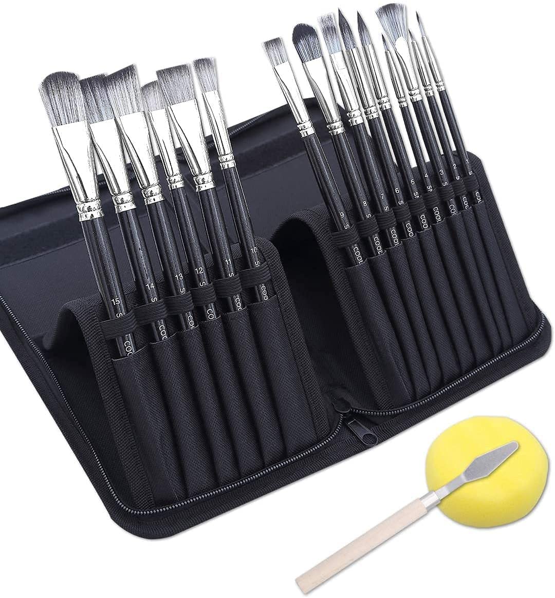 Amazon Com Art Paint Brushes Set Snow Cooler 15 Size Artist Brushes For Painting Contains Premium Nylon Hair Art Knife And Art Sponge Black